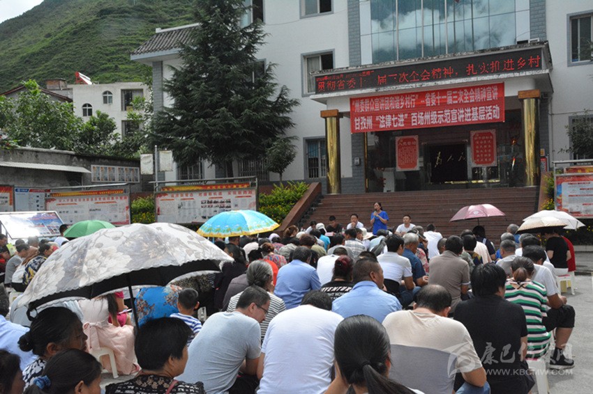 本網(wǎng)訊 7月31日,“州委群眾宣講團和諧鄉(xiāng)村行”——省委十一屆三次全會精神宣講暨“法律七進”百場州級示范宣講進基層活動在瀘定縣冷磧鎮(zhèn)拉開序幕。該鎮(zhèn)壩區(qū)村組群眾代表、村組干部、鎮(zhèn)干部458人聆聽宣講。