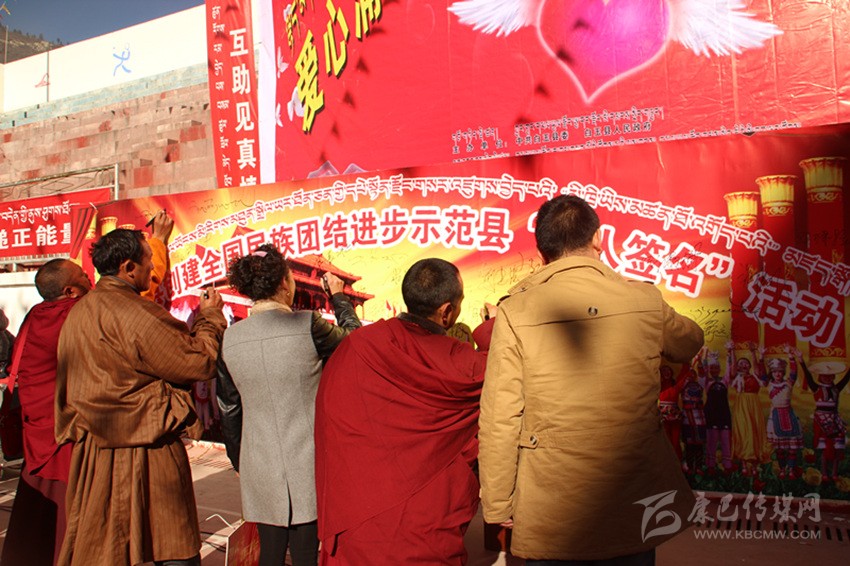 其實(shí),在白玉,像澤稱降措這樣感人肺腑的故事絕非個案。采訪中,筆者細(xì)細(xì)梳理五年來白玉的創(chuàng)建舉措與成績,完全可以用“務(wù)實(shí)”“扎實(shí)”這四個字來形容。自2014年創(chuàng)建活動啟動以來,縣委、縣政府嚴(yán)格按照“三年創(chuàng)建、四年提升”要求,緊扣“八進(jìn)活動、共建對子”兩個關(guān)鍵,聚焦“民族團(tuán)結(jié)促發(fā)展、民族團(tuán)結(jié)促穩(wěn)定、民族團(tuán)結(jié)促民生”三大目標(biāo),采取“精準(zhǔn)安排、精準(zhǔn)施策、精心打造、精細(xì)管理”四項(xiàng)舉措,并通過層層簽訂目標(biāo)責(zé)任書和層層落實(shí)創(chuàng)建標(biāo)準(zhǔn)、測評指標(biāo),進(jìn)而形成了“黨委統(tǒng)一領(lǐng)導(dǎo)、黨政齊抓共管、部門各司其職、社會廣泛參與”的創(chuàng)建工作格局;采取“年度定方案、季度有督查、月月抓推進(jìn)、層層重落實(shí)”的方式,通過召開專題會、動員會、現(xiàn)場會、督導(dǎo)會、匯報會等形式,抓問題、添措施、促整改、補(bǔ)短板、求提升,一系列動真碰硬的推進(jìn),使得創(chuàng)建工作由“虛”變“實(shí)”;按照“精準(zhǔn)宣講、掛圖作戰(zhàn)、對單宣講、對村消號、定學(xué)式”的宣講思路,采取“縣到鄉(xiāng)、鄉(xiāng)進(jìn)村、村入戶、寺廟與僧尼”四個面對面等方式,并結(jié)合常態(tài)化開展的“四下鄉(xiāng)”活動,廣泛學(xué)習(xí)宣傳黨的民族理論、宗教政策、法律法規(guī)以及各項(xiàng)惠農(nóng)惠民政策。五年來,全縣累計出動宣講服務(wù)人員1180人次,開展宣講宣教、“四下鄉(xiāng)”活動以及民族團(tuán)結(jié)“八進(jìn)”活動多達(dá)988場次,覆蓋基層干部、農(nóng)牧民群眾和及寺廟近8萬人次,發(fā)放各類宣傳資料2.3萬余份、圖書光盤4500余本(張),贈送各種書籍4130余冊,放映電影152場次;在主要街道、繁華路段、出租車頂屏、燈箱燈桿以及干線公路沿線堡坎,設(shè)置LED屏、宣傳牌、滾動標(biāo)語和墻體標(biāo)語,推送各類創(chuàng)建信息上萬余條,在各機(jī)關(guān)、單位、醫(yī)院、學(xué)校、寺廟、鄉(xiāng)鎮(zhèn)、村組(社區(qū))設(shè)置民族團(tuán)結(jié)標(biāo)語、宣傳櫥窗、展板和文化墻,推出各類宣傳欄2145個、宣傳展板 435個;在縣級宣傳平臺開設(shè)專欄,完成各類主題宣傳300余場次;舉辦創(chuàng)建“萬人簽名”、鍋莊節(jié)、演講比賽、籃球友誼賽、知識競賽、文藝演出等各類民族團(tuán)結(jié)主題活動近20場,實(shí)現(xiàn)了創(chuàng)建宣講宣傳宣教全方位、多層面、立體式和廣覆蓋;切實(shí)將民族團(tuán)結(jié)工作與脫貧攻堅、基層黨建、群眾工作、鄉(xiāng)村治理、依法治縣等有機(jī)結(jié)合,大力開展干群結(jié)對認(rèn)親、干部聯(lián)寺聯(lián)僧、支部共建共創(chuàng)以及警民共建等活動;切實(shí)在廣大農(nóng)牧民群眾、幫扶援建隊(duì)伍、宗教寺院、學(xué)校師生、企業(yè)以及部隊(duì)中發(fā)現(xiàn)典型、宣傳典型,進(jìn)而在全縣上下形成了“學(xué)先進(jìn)、趕先進(jìn)、當(dāng)標(biāo)兵”的濃厚氛圍;采取政策傾斜、整合項(xiàng)目、配套資金等措施,狠抓示范點(diǎn)規(guī)范化建設(shè)。目前,全縣所有鄉(xiāng)(鎮(zhèn))、縣級黨政機(jī)關(guān)、武警部隊(duì),45%以上的村(社區(qū))、企事業(yè)單位和寺廟已成為民族團(tuán)結(jié)進(jìn)步示范地區(qū)或示范單位;……精準(zhǔn)發(fā)力、持續(xù)給力的創(chuàng)建活動,有效形成了創(chuàng)建活動“人人參與、人人推動、人人負(fù)責(zé)、人人共享”的喜人局面。