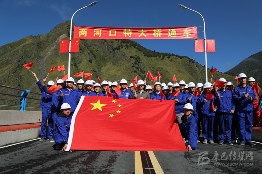 2015年3月10日,兩河口特大橋開工建設(shè);2018年11月5日凌晨4點35分,隨著最后一斗混凝土的入倉,由公司承建的兩河口水電站庫首跨庫特大橋主橋順利完成合龍,安全、優(yōu)質(zhì)、提前實現(xiàn)了業(yè)主合同要求的重大節(jié)點目標(biāo);2019年9月28日10時40分,大橋建成通車使用,提前15天完成工期。