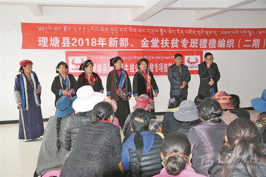 “群眾技能缺乏,市場(chǎng)競(jìng)爭(zhēng)力弱”是理塘部分群眾貧困的主要原因之一。亞吉公司始終以“傳授技能,一心為民致富”的初心,深入抓好群眾技能培訓(xùn)。響亮地提出了“掙錢脫貧致富奔康不落一戶”的口號(hào),與縣就業(yè)局和鄉(xiāng)鎮(zhèn)密切協(xié)同,制訂了《貧困牧民群眾手工藝技能培訓(xùn)實(shí)施方案》,共同實(shí)施了“技能引領(lǐng)脫貧攻堅(jiān)奔康富民惠民”工程。開(kāi)展了“培訓(xùn)+技能+回收”的新型手工紡織技能培訓(xùn),堅(jiān)持“紡織在群眾,技能在傳授”的方針,從使用手工紡織工具、細(xì)致分線精細(xì)紡織、推搡紡線等方面進(jìn)行了全方位的技能培訓(xùn),幫助100余名群眾,獲得了牦牛絨手工紡織技能。同時(shí),為更好地促進(jìn)群眾增收致富,還積極提供紗線給群眾紡織,常年回收手工藝紡織品—牦牛絨氆氌布料1700余米,價(jià)值達(dá)10.2萬(wàn)元,實(shí)現(xiàn)了群眾“致富有路勤為徑,掙錢致富在家里”的目標(biāo)。
