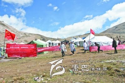 近日,在海拔5100多米、理塘縣最大的蟲草采集地阿加溝,國(guó)旗邊“曲登鄉(xiāng)衛(wèi)生院(蟲草采挖點(diǎn))門診部”特別耀眼,對(duì)邊懸掛的“醫(yī)務(wù)室”牌子十分醒目,兩名醫(yī)生正在“帳篷醫(yī)院”里給兩位采挖蟲草的牧民患者輸液,像這樣的“醫(yī)院”8個(gè)較大的采挖點(diǎn)都有。