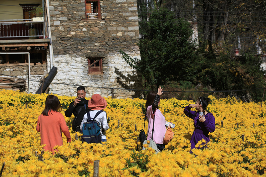游客在菊花地里游玩。 洛桑達瓦 攝