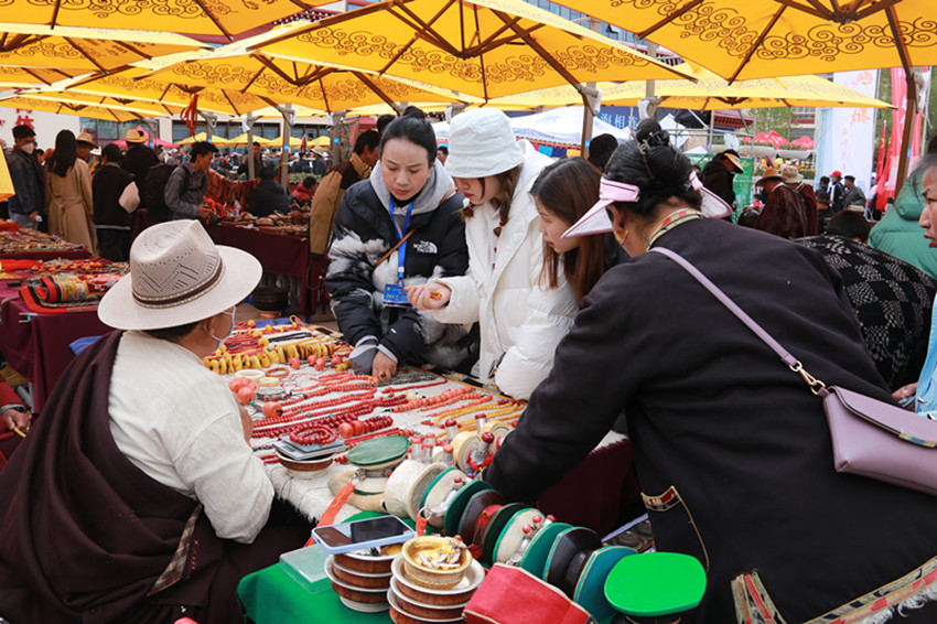 “這個(gè)銅鍋?zhàn)畹投嗌倌艹??”“這個(gè)藏刀上面的珠子是真的么?”……整整一天,羅布林廣場(chǎng)門庭若市、人聲鼎沸,詢問聲、報(bào)價(jià)聲、討價(jià)聲充斥在市集各個(gè)角落。來自甘肅省甘南州卓尼縣的商人嘎藏在古玩交易博覽活動(dòng)展覽兩日,就達(dá)成26萬元的交易額。據(jù)他介紹,從受邀參加活動(dòng)到現(xiàn)場(chǎng)展示,都有當(dāng)?shù)毓ぷ魅藛T聯(lián)系對(duì)接,不僅免費(fèi)提供展位,還有公安干警現(xiàn)場(chǎng)維護(hù)安全和秩序,更有當(dāng)?shù)卣刻焖蛠砦绮汀⑼聿秃惋嬘盟?,參加此次古玩交易博覽活動(dòng)很安心、舒心和放心。