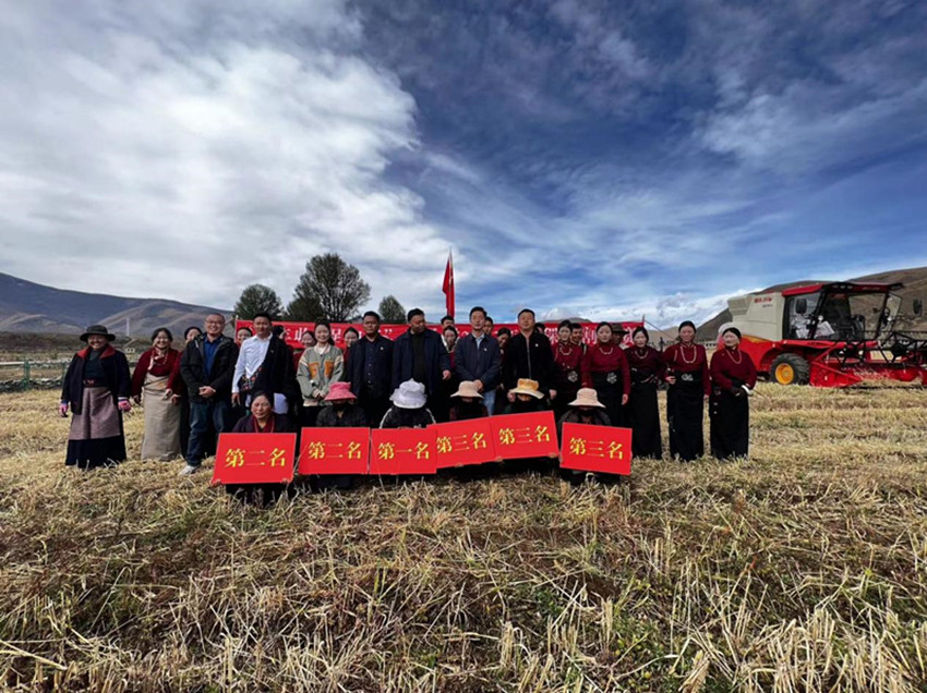 “開鐮!”10月12日上午,在寒桑村村委會(huì)主任洛絨群真的口令下,以“慶豐收 促和美”為主題的寒桑村2023年青稞收割比賽在該村多品種青稞試驗(yàn)田內(nèi)拉開帷幕。