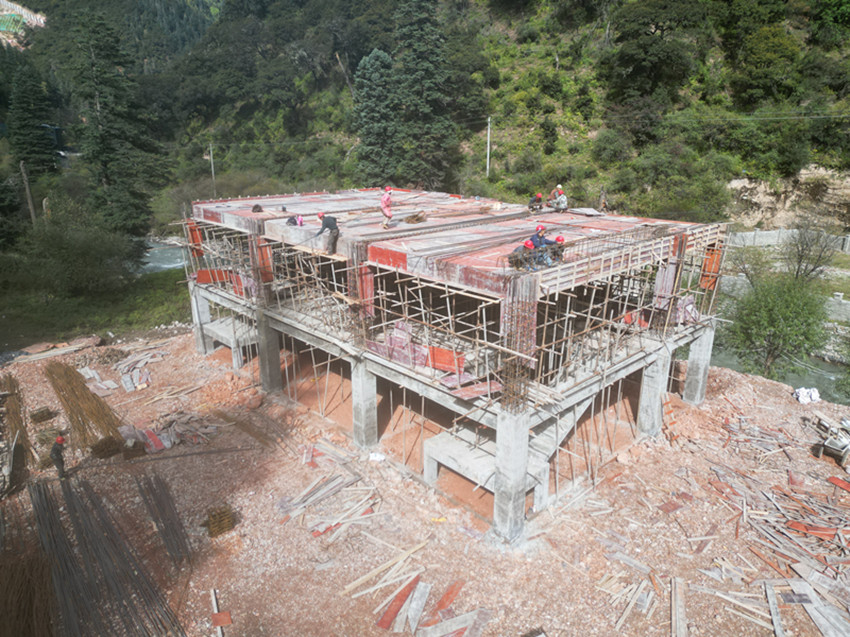 本網(wǎng)訊 近日,筆者走進白玉縣蓋玉鎮(zhèn)沙馬鄉(xiāng)德西村菌類加工廠房和銷售超市建設(shè)現(xiàn)場,一座兩層樓房已具雛形,工人們正有條不紊地開展混凝土澆筑、木板拆卸等作業(yè),一派熱火朝天的繁忙景象。