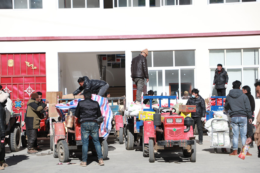 “今天我們村的17戶村民來(lái)領(lǐng)物資,臨近春節(jié)了,這些生活用品的發(fā)放真是太及時(shí)了,感謝黨和政府的關(guān)懷,我們的生活真是越來(lái)越好了。”熱加鄉(xiāng)拉巴村村民昂布開(kāi)心地說(shuō)。