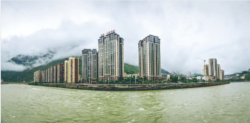 在河對岸的“艾威·春之陽光城”,三幢高樓拔地而起,業(yè)已封頂。垂直森林建筑吸人眼球,垂直森林生態(tài)住房將為瀘定人民打開一扇人居環(huán)境的時代窗口。