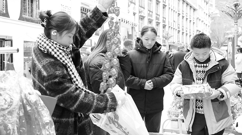 一進(jìn)入臘月,年的味道越來越濃,丹巴縣家家戶戶采辦年貨的熱情也逐漸高漲,所有商店和集貿(mào)市場人頭攢動,開始熱鬧起來。人們忙著選購各種商品,迎接新年的到來。