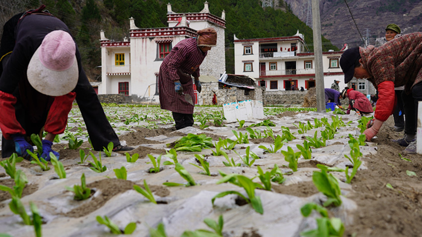 人勤春早盼豐收。眼下正是春耕關鍵期,在丹巴縣半扇門鎮(zhèn)核桃坪村宏楊農(nóng)業(yè)開發(fā)有限公司種植基地,嫩綠的萵筍種苗生機盎然,長勢喜人。十多名村民手持農(nóng)具、翻墾土地,正有條不紊地種植萵筍種苗,一片熱火朝天的春耕景象。