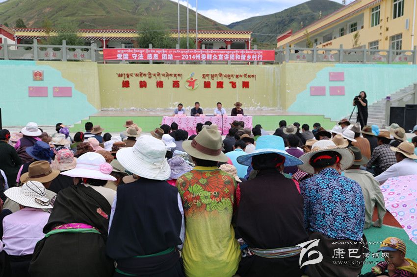 “2014州委群眾宣講團(tuán)和諧鄉(xiāng)村行”宣講團(tuán)9月11日下午來到道孚縣格西鄉(xiāng),在格西鄉(xiāng)中心校內(nèi),群眾們早早到來,盤腿坐在塑膠跑道上,認(rèn)真聽州民干校高級(jí)講師仁志降澤用藏文講述的一個(gè)又一個(gè)通俗易懂的小故事,感知“愛國 守法 感恩 團(tuán)結(jié)”八個(gè)字。他還結(jié)合具體實(shí)例講述法律、交通方面知識(shí),大家聽得聚精會(huì)神,時(shí)而被降澤老師的小故事逗的捧腹大笑,時(shí)而陷入了深深的思考。