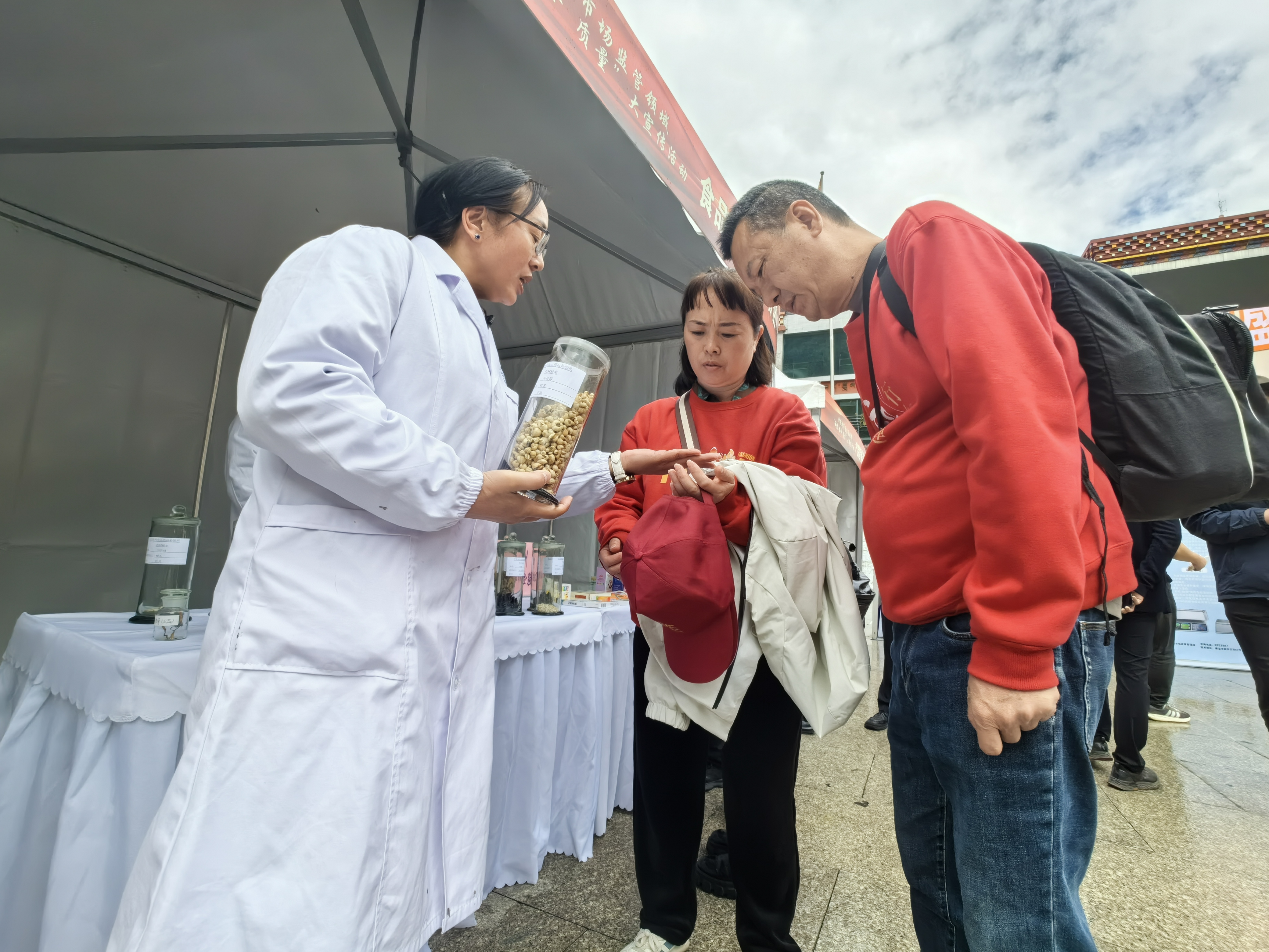 在放心消費(fèi)科普區(qū),州食品藥品檢驗(yàn)所工作人員劉玉瓊為重慶游客張繼渝介紹川貝辨別訣竅:“川貝由兩瓣組成,一般是一大一小兩瓣,大瓣包小瓣,大家稱為‘懷中抱月’……”當(dāng)起“推廣員”、介紹高原特產(chǎn),既讓消費(fèi)者買到正宗產(chǎn)品,又讓高原特產(chǎn)暢通銷路,走向更大銷售市場(chǎng)。