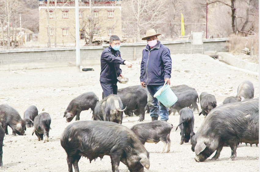 外來幫扶固然重要,但還必須解決自身“造血”功能。得知澤仁瓦吉家養(yǎng)了幾頭豬,是全村唯一的養(yǎng)豬戶,劉濤專門到他家了解情況,幫他想辦法、出點子,鼓勵他擴大養(yǎng)殖規(guī)模,同時多方溝通協(xié)調,為他爭取到3萬元的免息扶持資金。2016年,澤仁瓦吉家的養(yǎng)豬場辦起來了,當年就飼養(yǎng)了100多頭藏香豬。2017年第一批豬出欄,澤仁瓦吉獲得了高達10萬元的凈利潤。