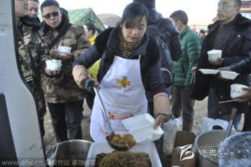 據(jù)了解,韓大哥是這家飯店的老板之一,他是仁壽縣人,幾年前和朋友來到新都橋開始經(jīng)營飯店??刀?.3級地震發(fā)生時,他人在成都。但看到災情發(fā)生,韓大哥立即和飯店另外幾個合伙人決定到安置點免費送盒飯,“我在當?shù)刈隽?、7年生意,現(xiàn)在出了事情,就應該伸手支援嘛!”據(jù)韓大哥介紹,此次地震發(fā)生后,新都橋80%左右的飯店都已經(jīng)關門,他們的飯店因為還有一些接待工作,仍在正常營業(yè)。自11月23日晚上,他家的飯店就主動為塔公鎮(zhèn)的安置點免費派送盒飯,“包括中午和晚上兩頓,兩葷兩素一湯的配置。”因為太忙, 韓大哥來不及仔細統(tǒng)計,他大概知道每天送出的盒飯在1200盒到1500盒之間,每天送出盒飯的成本在4、5千左右。但在他看來,這些其實都算不上什么,“能為災區(qū)出一份力,我們就很滿足了,我們打算一直送到抗震救災工作結束,也就是直到災民有條件自己做飯的時候。”“這邊天氣很冷,他們吃的一般是些面包、牛奶之類的干糧,我們就是想讓大家吃到熱飯、熱菜。”據(jù)韓大哥介紹,每天飯店都會派出3、4個人將盒飯運送到安置點,“只要有人需要我們都會分發(fā)盒飯,包括一些志愿者和武警官兵也吃我們的飯。