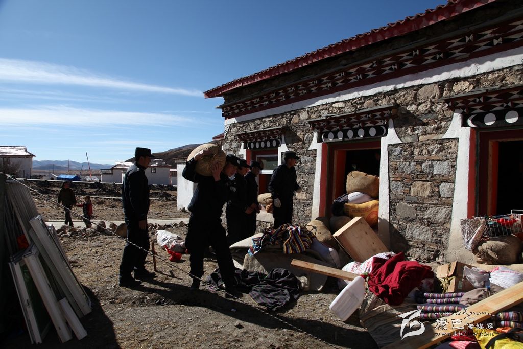 26日一大早,支隊(duì)政委牟其萬便帶領(lǐng)55名特警隊(duì)員,前往災(zāi)情嚴(yán)重的塔公鄉(xiāng)江巴村,瓦澤鄉(xiāng)多拉一村、多拉二村、俄依村,看望幫助受災(zāi)的50余戶村民,向受災(zāi)群眾講解宣傳防災(zāi)、減災(zāi)相關(guān)知識(shí),安撫受災(zāi)群眾情緒,幫助受災(zāi)群眾積極開展災(zāi)后自救工作。其余隊(duì)員則繼續(xù)在安置點(diǎn)附近開展救災(zāi)工作。