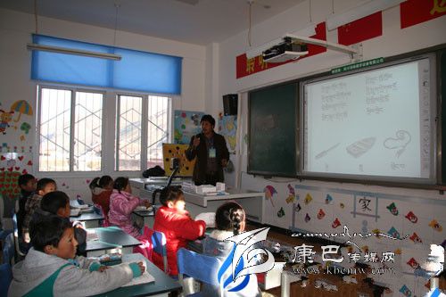 四川省甘孜州爐霍縣仁達(dá)鄉(xiāng)中心校教師正在利用多媒體教學(xué)?!?李益眾 攝