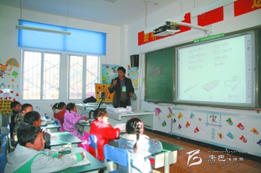 爐霍縣仁達鄉(xiāng)中心校教師正在利用多媒體教學。 李益眾 攝