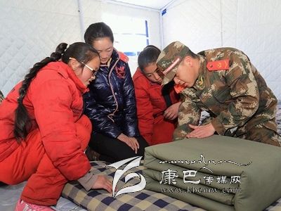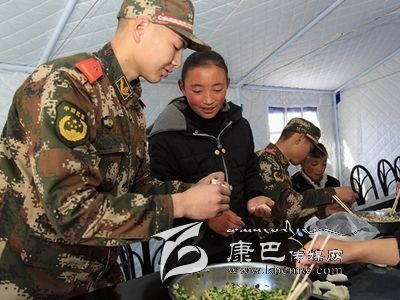 12月7日,康定6.3級地震后的第二個周末,這對甘孜州西康福利學校的孩子們來說,是一個開心的日子。當天上午,武警甘孜州支隊抗震救災(zāi)一線官兵來到學校,與在這里生活學習的孤兒和特困生一起包餃子,度過了一個溫暖的周末。12歲的措姆性格靦腆,她把餃子皮攤在手心,一旁的戰(zhàn)士王兵舀了一勺餡放在餃子皮中央,可措姆怎么也沒法把餃子包得像模像樣。在王兵的輔導下,措姆很快學會包了一個漂亮的餃子。在學包餃子過程中,五六十雙手就包出五六十種餃子,看著自己的勞動成果,孩子們特別開心。吃過午飯,武警官兵們還精心安排了疊被子活動,在帳篷內(nèi)教孩子們怎么疊軍被。大家一起動手,你教我疊,熱鬧極了。(宋科霖 /文 郝勇 /攝)