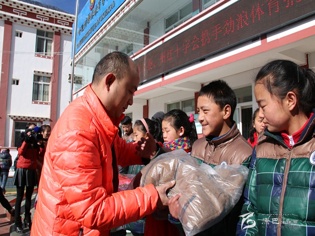 捐贈儀式上,州直工委、州紅十字會及“勁浪體育”甘孜分公司向殘疾貧困學(xué)生贈送87套、價值8萬余元的衣物。