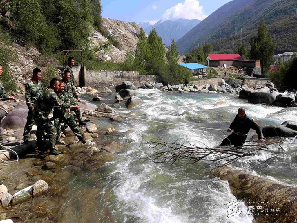 小尚一邊安慰受困男子,一邊用對講機(jī)向中隊(duì)值班員報(bào)告,請求援助。5分鐘后,中隊(duì)值班員帶領(lǐng)幾名班長骨干攜帶救援裝備緊急趕至岸邊,展開救援。五月的康定正值雨季,河水湍急、冰冷刺骨,加之河床亂石林立,官兵涉河接近受困男子困難。負(fù)責(zé)一線救援的龔財(cái)嵐排長決定利用河中大石采取短距離定向移動(dòng)的方法,拋出攀登繩,綁在老鄉(xiāng)腰上確保老鄉(xiāng)不被河水沖走。經(jīng)過近10分鐘緊急營救,受困老鄉(xiāng)被成功營救上岸。由于老鄉(xiāng)渾身冰涼且手上有傷,救援官兵決定將老鄉(xiāng)攙扶至營區(qū),由衛(wèi)生員對身體進(jìn)行簡單檢查,并對其傷口進(jìn)行處理包扎。