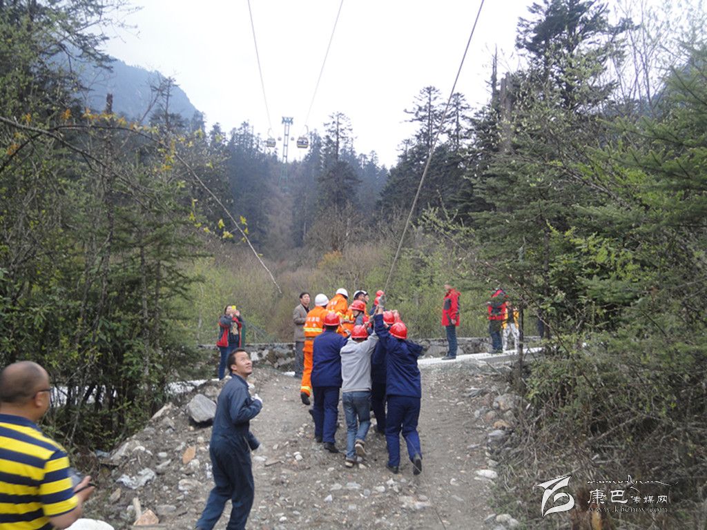應(yīng)急演練活動是模擬索道發(fā)生脫索故障,開展人工救護應(yīng)急訓練。在演練活動中,海螺溝客運索道出現(xiàn)故障不能運轉(zhuǎn),在1C支架和2#支架之間,兩個車廂共有三名游客滯留空中。海螺溝旅游索道公司立即啟動應(yīng)急預案,救護總指揮下達救援指令。后勤組成員對著車廂喊話,穩(wěn)定游客情緒。救護小組全體人員,安全、有序、迅速到達各自崗位,地面工作人員與空中救援人員相互配合,同時密切注意被困乘客的安全情況,正確操作各項程序,僅用半個小時就將被困乘客送到地面,安全完成營救。地面輔助救護人員立即對被營救人員進行現(xiàn)場檢查和救治,保障了被營救人員的生命安全,應(yīng)急演練活動圓滿完成。