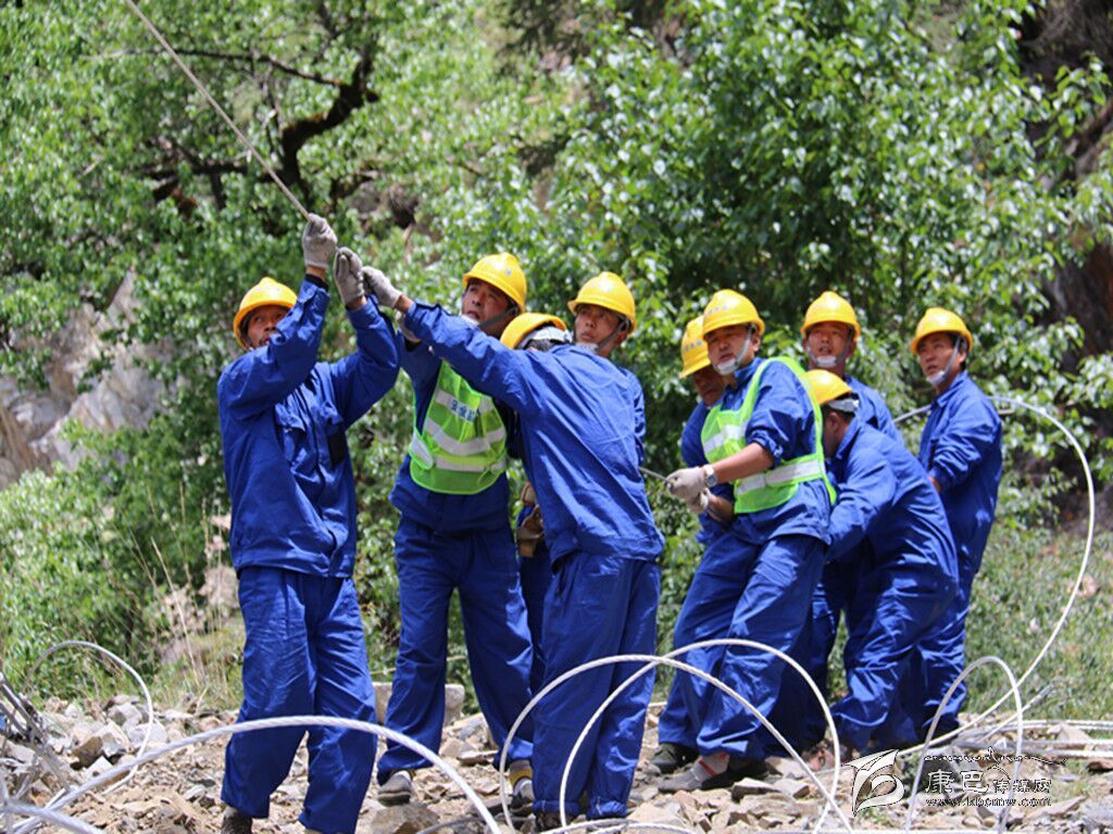 為了圓農(nóng)牧民通電夢,甘電公司誓要打好“決戰(zhàn)年”戰(zhàn)役。山高、路難、溝深、水急是今年無電區(qū)電力建設現(xiàn)場的真實寫照。在甘孜高原上奮斗著來自參建的監(jiān)理、建設和施工單位共計15支隊伍,他們和高原惡劣的氣候抗衡著,他們用“奮斗”二字譜寫著一首“電力人之歌”,為無電地區(qū)的藏族百姓早日通電打好了“決戰(zhàn)年”的戰(zhàn)役。在甘孜州各縣條件艱苦的無電地區(qū)工程建設點,隨處可見身著國網(wǎng)標志的身影。在色達、甘孜、石渠、理塘、巴塘、雅江等邊遠的“無電地區(qū)”施工現(xiàn)場,電力建設者們,頂寒風,斗冰雪,與惡劣環(huán)境抗衡,立塔架線,每天早出晚歸,完成一項又一項“難啃”的工程,夜晚燒堆篝火取暖,次日再次奔赴施工現(xiàn)場。這樣的“辛苦”記者在采訪過程中也見到。在雅江縣德差鄉(xiāng),手握對講機,身穿工裝的工程項目負責人龍森和他所以在的工程隊的工人們每天都是頂著烈日、冒著風雨加班加點在趕工程進度,幾個月下來,有的工人身上被太陽曬掉了幾層皮??墒撬麄儚膩頉]有喊一聲苦,喊一聲累,晴天一身汗,雨天一身泥,每到一個點都出色完成了任務。在困難和辛苦面前,龍森和工人師傅堅定的說:“再苦再累我們也受得了,只要老百姓能盡快用上電做什么都值得。這段路線的電桿已經(jīng)全部立起來了,現(xiàn)在只剩下架線的工作。我們一定要在月底之前為這兩個村通上電。”