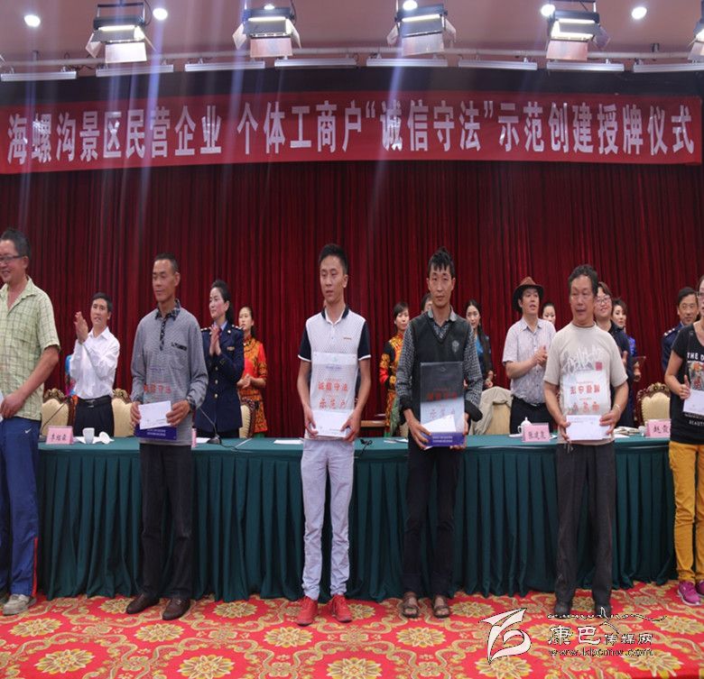 對公示無異議的178戶“誠信守法”示范創(chuàng)建戶命名授牌,由州工商局、海螺溝管理局授予甘孜州海螺溝景區(qū)"誠信守法示范戶",并頒發(fā)牌匾。 被授予“誠信守法示范戶” 178戶商家莊嚴宣誓:自愿申報成為“誠信守法”示范企業(yè)(個體工商戶),一定信守承諾、珍惜榮譽,將“誠信”作為立業(yè)、興業(yè)的基石和名片,崇尚法律、敬畏法律,依法經(jīng)營。同時,在“誠信守法”示范創(chuàng)建承諾書上莊重地簽下自己的名字。