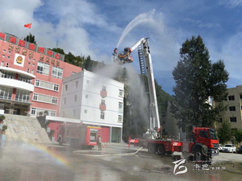 本網(wǎng)訊(劉國(guó)謙文/圖)9月8日上午,甘孜消防支隊(duì)操場(chǎng)衛(wèi)聳立著一道“銀色天梯”,筆者在現(xiàn)場(chǎng)目擊了 DG-32C登高平臺(tái)消防車(chē)的變形過(guò)程。隨著 4個(gè)支撐架的展開(kāi),車(chē)體被架離地面,登高平臺(tái)臂緩緩上升,如“擎天柱”般伸向云端。在兩名駕駛員的配合操作下,平臺(tái)頂端配載的水炮噴射出一條長(zhǎng)長(zhǎng)的水龍,隨著水壓漸漸加大,奔騰的水龍帶著一道彩虹劃過(guò)高空,成為云端深處一道壯觀(guān)的麗景。