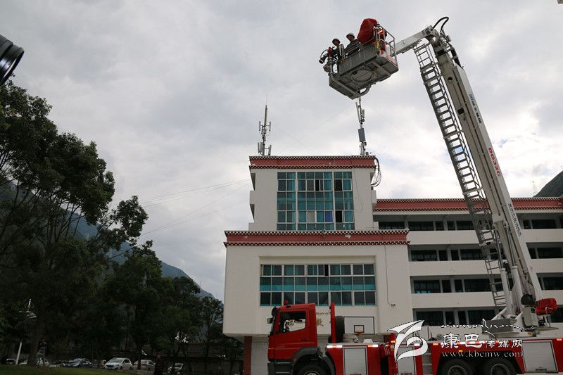 為使參訓(xùn)學(xué)生更好地將此次學(xué)習(xí)到的消防知識融于實踐,消防部門還在校園操場,組織參訓(xùn)學(xué)生開展了油盆火災(zāi)撲救,現(xiàn)場學(xué)生紛紛踴躍報名,現(xiàn)場氣氛十分活躍。在消防官兵的指導(dǎo)下,學(xué)生們分為三組,利用手提式干粉滅火器進行了油盆火災(zāi)撲救演練,提瓶、拔銷、對根、壓柄一氣呵成,火勢被順利撲滅。隨后,消防官兵又向?qū)W生們演示了單干線出兩支水槍滅火操,并介紹了甘孜州最尖端的消防車輛器材及裝備,組織參訓(xùn)新生進行了一場32米登高平臺車高空作業(yè)體驗。按照操作規(guī)程,消防官兵協(xié)助參加體驗的學(xué)生戴好防護頭盔,扎上綁有安全繩的防護腰帶,順利登上了登高平臺。在消防官兵嫻熟的操作技術(shù)下,登高平臺勻速上升到20米高空,現(xiàn)場傳來了一陣陣驚嘆聲。