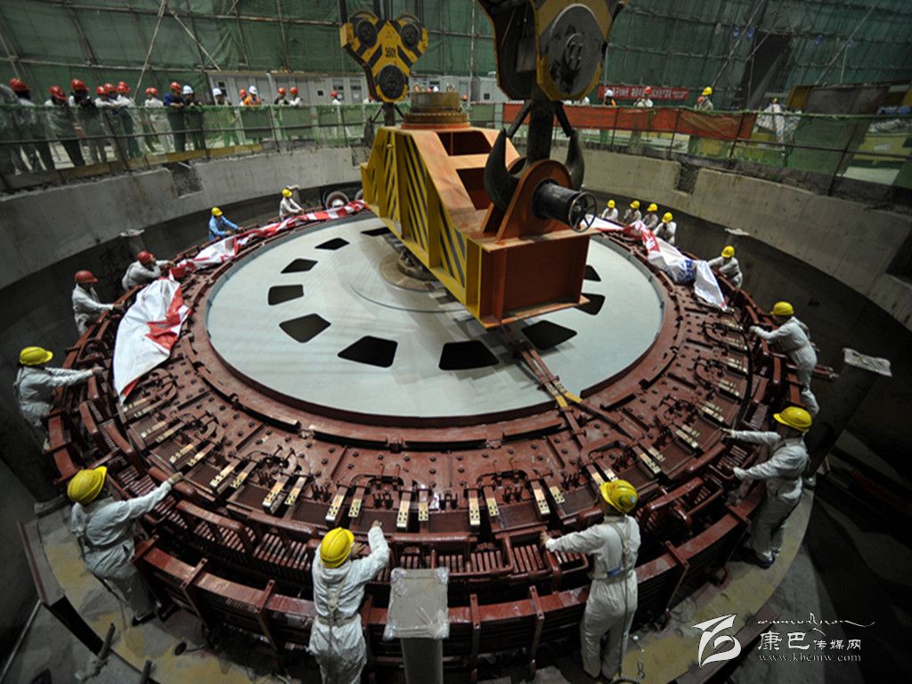 10月25日10時(shí)38分,總重量達(dá)700噸的黃金坪水電站1號(hào)20萬(wàn)千瓦機(jī)組轉(zhuǎn)子一次吊裝成功。當(dāng)日上午9時(shí)30分,鞭炮齊鳴,業(yè)主組織設(shè)計(jì)、監(jiān)理、施工單位、廠(chǎng)家代表等在現(xiàn)場(chǎng)舉行了隆重而簡(jiǎn)樸的吊裝儀式,共同見(jiàn)證并指導(dǎo)此節(jié)點(diǎn)目標(biāo)的順利完成。圖為安裝、調(diào)試現(xiàn)場(chǎng)。