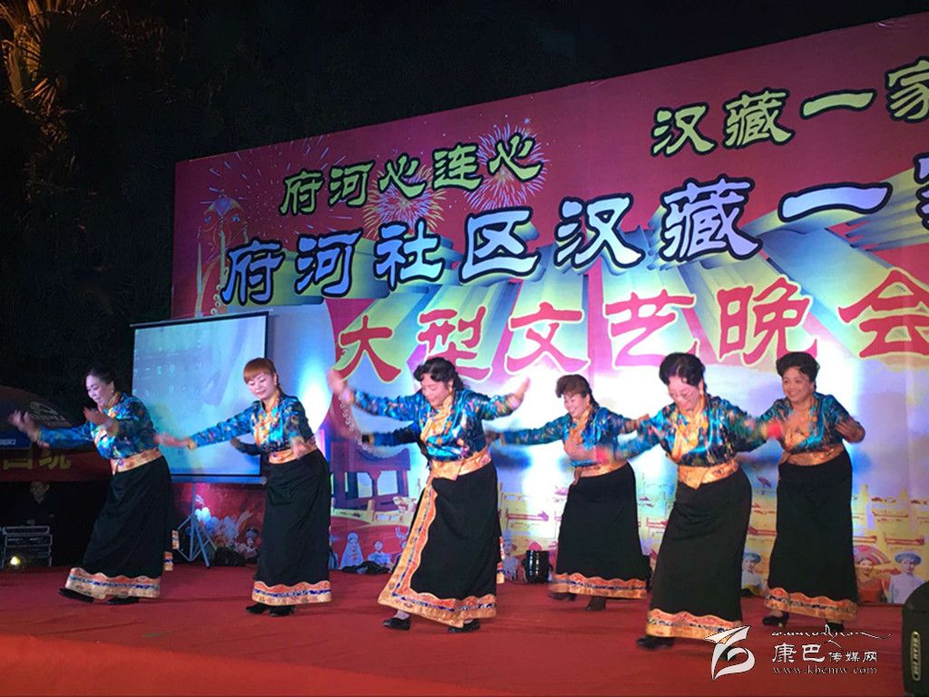 本網(wǎng)訊(趙國寅 文/圖)11月24日,成都高新區(qū)中和街道府河社區(qū)在東府花園舉辦“府河心連心,漢藏一家親”文藝晚會,慶祝甘孜藏族自治州建州65周年??蛋托l(wèi)視節(jié)目主持人翁青拉姆、林豐應邀主持晚會。中和街道黨工委、辦事處領導到場祝賀。