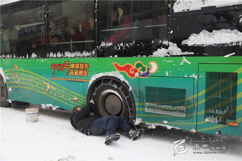 另一條街上,一輛電力搶險(xiǎn)車匆匆駛來,本報(bào)一位記者隨即登上了搶險(xiǎn)車。距候車點(diǎn)不遠(yuǎn)的路口,康定市公安交警大隊(duì)城區(qū)中隊(duì)的民警土登正在指揮車輛有序通過。土登告訴記者,除了早些時(shí)候趕往折多山的民警外,城區(qū)中隊(duì)民警已經(jīng)傾巢而出,分布在城區(qū)各個(gè)路口,以確保交通順暢。土登說:當(dāng)天早上康定老城的交通基本正常,沒有出現(xiàn)大的擁堵和交通事故,只是偶爾有車輛掛鏈條,會造成短暫堵車。他提醒人們:在積雪未融化前要減少駕車出行,即使駕車出行也要提前掛上防滑鏈,嚴(yán)格控制車速,確保行車安全。