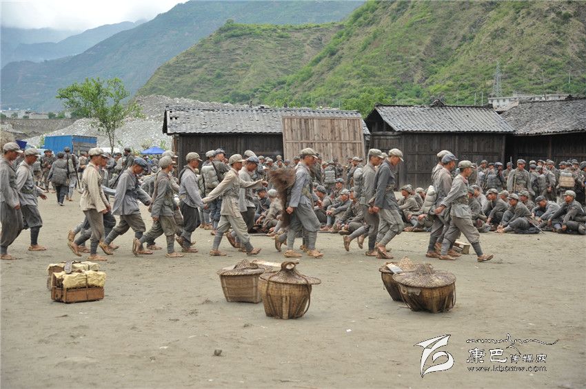 一隊隊紅軍戰(zhàn)士前往拍攝點集結(jié)。