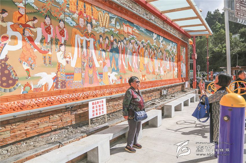 本網(wǎng)訊(孫學(xué)花/文 記者 陳楊/圖)8月3日,大型唐卡——文成公主進(jìn)藏圖在康定市公主橋全民健身場旁的文化墻上亮相,引來眾多市民和游客觀看,受到一致好評。