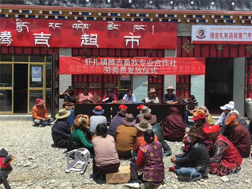 “精準(zhǔn)扶貧”貴在“精準(zhǔn)”,精確找準(zhǔn)“貧困癥結(jié)”,準(zhǔn)確“對癥下藥”;由于塔須村惡劣的自然環(huán)境制約,村民們還過著古老傳統(tǒng)的游牧生活,導(dǎo)致塔須村社會(huì)、經(jīng)濟(jì)、文化發(fā)展相對滯后,全村無集體經(jīng)濟(jì)產(chǎn)業(yè),屬于我州貧困村中的“貧中之貧”,以往傳統(tǒng)的扶貧措施猶如“灑胡椒面”,治標(biāo)不治本;“授人以魚,不如授人以漁”,為讓塔須村能建立村集體產(chǎn)業(yè),村民們能掌握一門致富手藝,州水務(wù)局結(jié)合塔須村實(shí)際,多次派遣工作組深入塔須村,了解貧困戶生活現(xiàn)狀、致富愿望,聽取村兩委干部建言,形成專題脫貧報(bào)告;鑒于牧民致富愿望強(qiáng)烈,村干部建言獻(xiàn)策,在州水務(wù)局的積極協(xié)調(diào)下,在蝦扎鎮(zhèn)黨委、政府的倡導(dǎo)下,經(jīng)石渠縣人大牽頭,通過州級(jí)各聯(lián)系單位、駐村幫扶工作組和村兩委的努力,整合各方人力、物力、財(cái)力,團(tuán)結(jié)協(xié)作,于2016年3月成立了“石渠縣蝦扎騰吉畜牧專業(yè)合作社”,并選舉出9名致富能手為騰吉專業(yè)合作社理事人選。“騰吉合作”乃飛騰吉祥之意,寓意著牧民群眾齊心協(xié)力,共奔小康。