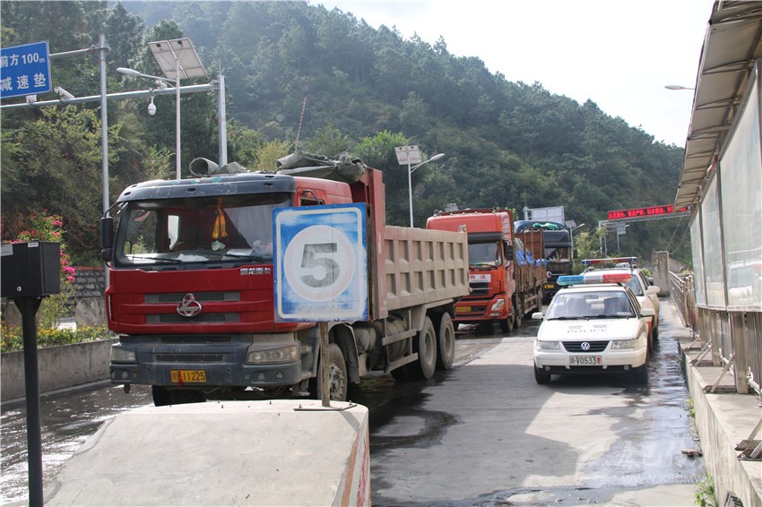 去年10月21日,全國(guó)將執(zhí)行新的貨運(yùn)車裝載標(biāo)準(zhǔn),將降低貨車運(yùn)載量。20日,瀘定檢測(cè)站迎來(lái)了大貨車運(yùn)輸高峰,當(dāng)天通過(guò)瀘定檢測(cè)站的進(jìn)州貨車就高達(dá)953輛,陡然增加的車流量,讓瀘定檢測(cè)站執(zhí)法人員忙得不可開(kāi)交。凌晨1點(diǎn)左右,因距離檢測(cè)站數(shù)公里外道路正在施工,造成交通大面積擁堵。盡管不在工作職責(zé)范圍內(nèi),瀘定檢測(cè)站除值班人員留守外,交通路政、運(yùn)管、公安交警、特警全員上陣疏導(dǎo)交通?;謴?fù)通行時(shí),已經(jīng)是凌晨3點(diǎn)過(guò)。對(duì)于這樣的“家常便飯”,執(zhí)法人員已經(jīng)司空見(jiàn)慣?!安荒茉跈z測(cè)站周邊造成交通擁堵,這是我們的職責(zé)”。