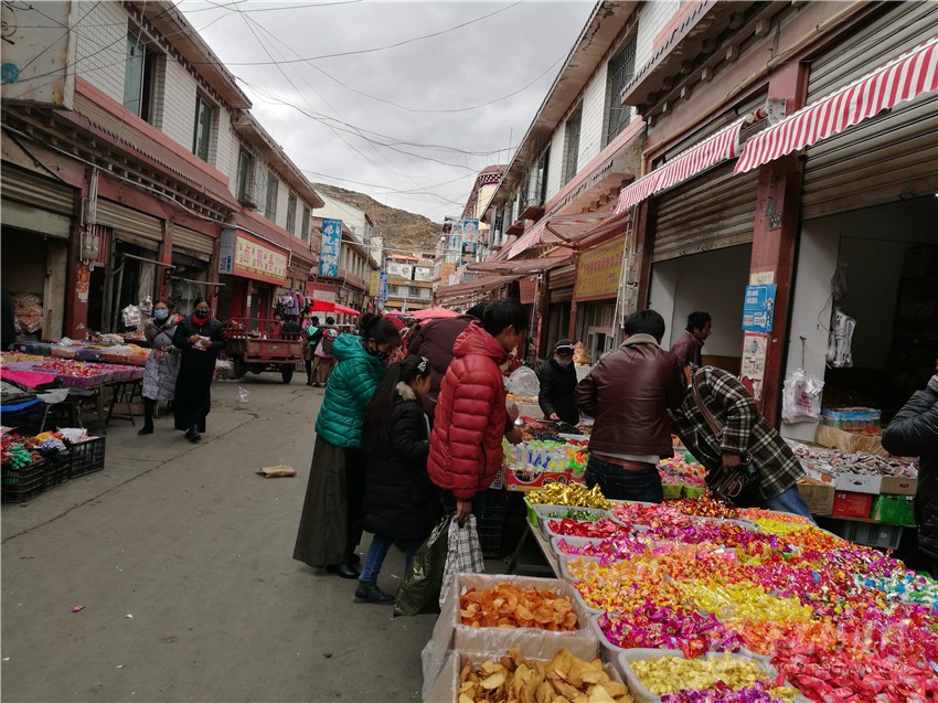 筆者在該縣副食店、超市看到,商家的各種促銷優(yōu)惠活動,吸引了不少農(nóng)牧民群眾,前來購買年貨的群眾熙熙攘攘。各種涼鹵食品店的生意也相當(dāng)火爆?!翱爝^年了,吃的、用的和穿的都得買點,過完藏歷年,就要忙春耕生產(chǎn)了?!笔掷锪嘀蟀“曦浀慕荡霛M臉喜悅地說。