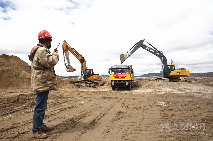 在四川省稻城縣海子山高海拔宇宙線(xiàn)觀測(cè)站建設(shè)現(xiàn)場(chǎng),工人們?cè)谑┕ぁ?/span>