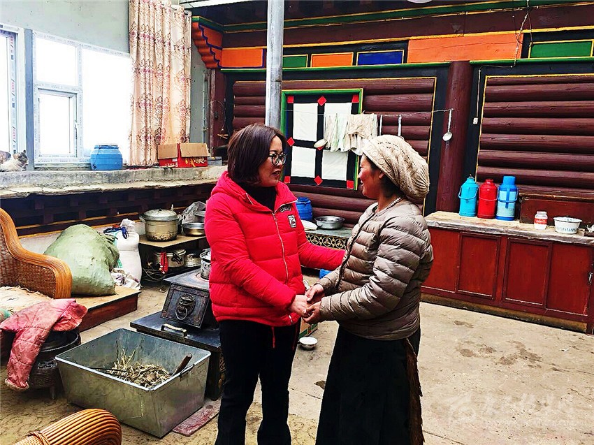 全國(guó)三八紅旗手、州婦聯(lián)主席穆黎在醫(yī)院慰問(wèn)生病的覺(jué)姆。