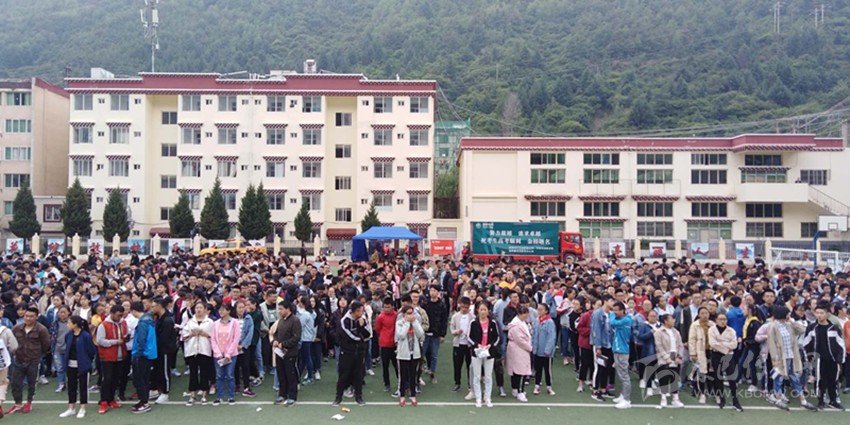 開考前,1600多名考生在康定中學(xué)考點(diǎn)候考。