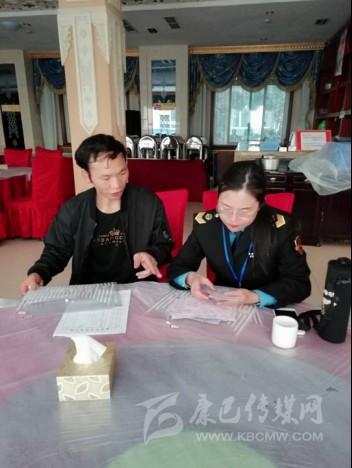 執(zhí)法人員指導(dǎo)餐飲食品安全。