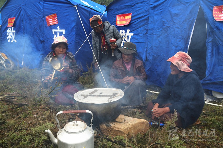 曲珍、曲西和幾個(gè)伙伴正在燒著開(kāi)水?!斑@是到安置點(diǎn)后我第一次生火。前兩天吃干糧喝礦泉水,讓喝慣了酥油茶的我們很不適應(yīng)。”曲珍說(shuō)。