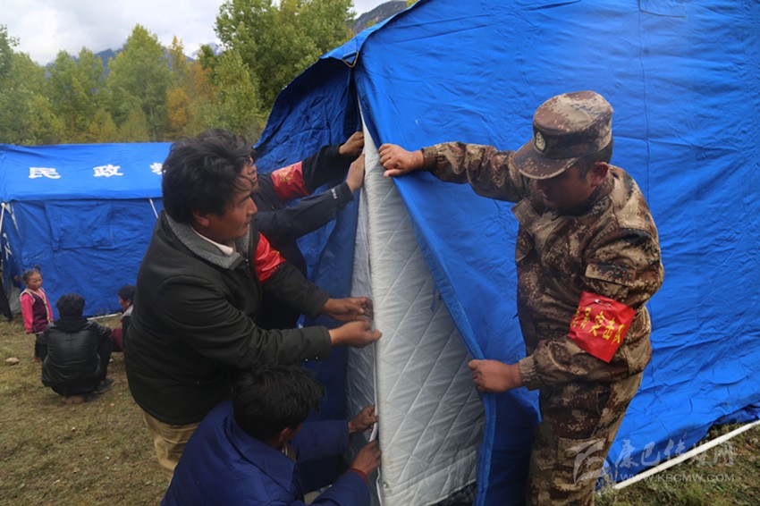 走進(jìn)炯青洞臨時(shí)安置點(diǎn)27號(hào)帳篷,見(jiàn)到村民康珠正在整理被蓋。她介紹說(shuō),縣里給每戶村民發(fā)了5床棉被,發(fā)放了礦泉水、方便面、餅干,發(fā)放了常用藥,還拉上了電,每天晚上能用上4個(gè)小時(shí)的電,我們睡了,還有黨員干部輪流值班。“黨和政府為我們想得很周到,讓我們吃得飽穿得暖還睡得安全?!?/p>