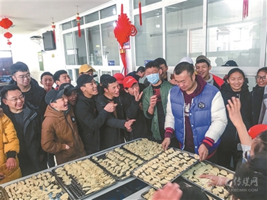 醫(yī)院干部職工和學(xué)生一起包餃子。