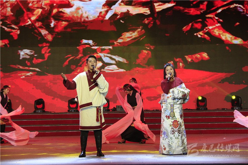 隨后以三個“新”字為主題的篇章,更是彰顯了民族風情、甘孜風格、時代風貌。挖掘民族素材、彰顯民族文化,甘孜歌舞團以格薩爾傳說為“藍本”,推陳出新表演的《格薩爾仲肯》,讓民族文化熠熠生輝;民族文化需傳承,少年強則甘孜強。德格縣中學少兒則噶表演的《吉祥頌》,讓人感到后生可畏,贏得陣陣掌聲;富有激情的朗誦、珠聯(lián)璧合的配樂,《甘孜與祖國相約出發(fā)》讓現(xiàn)場觀眾真切地感受到了盛世中華,真情贊美幸福美好的新生活;歌曲大聯(lián)唱《如歌歲月》通過不同時代的代表性歌曲,唱出了甘孜兒女愛祖國、愛家鄉(xiāng),感黨恩、思奮進的真摯情懷;由州歌舞團和爐霍、丹巴、德格、巴塘等縣藝術團聯(lián)袂上演的《幸福大家庭》,既有漢族歌舞《祝福祖國》、藏族舞蹈《放牧人》、蒙古族舞蹈《送親》、彝族舞蹈《彝家情》、回族舞蹈《花兒》,更是彰顯了民族團結(jié)的大主題,為我州創(chuàng)建全國民族團結(jié)進步示范州擂鼓助威。
