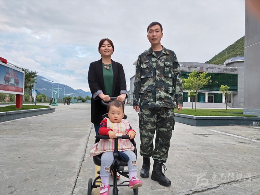 1989年出生的孫洪娟是山東省聊城人,她一開始就只想找一個軍人作伴侶?!爱敱亩颊?、善良!”2011年3月28日,她經(jīng)朋友介紹認識了于彬(武警四川省總隊機動第二支隊勤務保障大隊警情中隊司務長)?!翱赡苁且灰婄娗榘?!”從第一次見面算起,倆人不到十天就舉行了訂婚儀式。過了8個月,兩人順利完婚。“由于當時電話視頻還不普及,8個月的時間里我們誰也沒見過誰,只有通過電話了解對方。就連我朋友問他長什么樣時,我都要想好久才能有個模糊的樣子?!睂O洪娟告訴記者。2014年,倆人迎來了他們的第一個孩子。