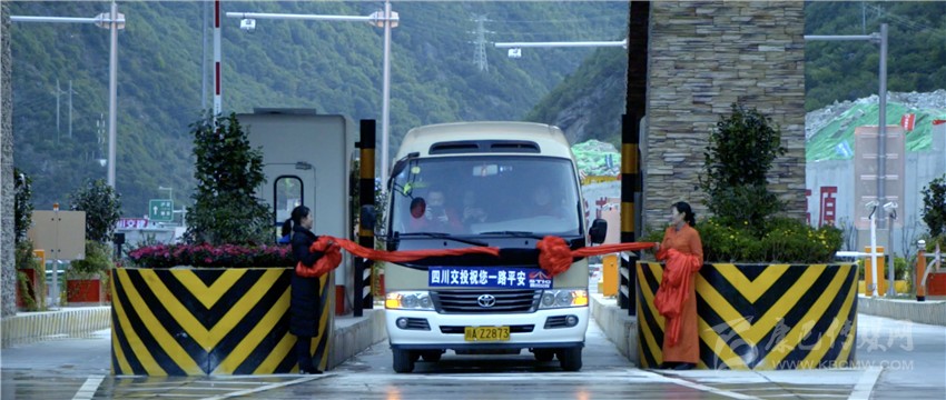 “木雅古碉”建筑矗立兩旁、六出四進(jìn)通道一字排開;巨大熒幕流光溢彩,連接通道窗明幾凈;從無(wú)人機(jī)航拍畫面可以看到,一面巨大的五星紅旗,已在站頂平層鋪展開來(lái)……9月28日上午8時(shí)整,一輛客車從升航特大橋駛來(lái),撞破紅綢駛向康定城,旁邊車道上等待多時(shí)的車輛依次行進(jìn),雅康高速公路上規(guī)模最大的收費(fèi)站——康定收費(fèi)站正式啟用,康定連接線和入城大道通車?!翱刀ㄟB接線建成后將極大提高雅康高速公路進(jìn)入康定城區(qū)車輛通行效率、有效改善康定入城交通的擁堵狀況?!辈貐^(qū)高速公路公司相關(guān)負(fù)責(zé)人如是說。