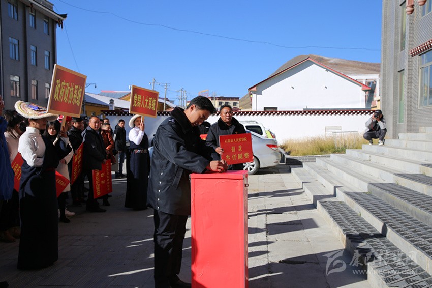 本網(wǎng)訊 “扶貧濟(jì)困、樂善好施、崇德向善,是中華民族的傳統(tǒng)美德,是構(gòu)建和諧社會(huì)、建設(shè)‘生態(tài)文明和諧’新石渠的要求。我們呼吁全縣各機(jī)關(guān)、企事業(yè)單位、社會(huì)團(tuán)體及社會(huì)各界人士主動(dòng)伸出援手,積極參與此次活動(dòng),奉獻(xiàn)一份愛心,貢獻(xiàn)一份力量……”10月17日上午10點(diǎn),隨著縣委副書記扎西曲珍宣讀倡議書的聲音,由石渠縣脫貧攻堅(jiān)辦、縣工青婦、縣紅十字協(xié)會(huì)聯(lián)合舉辦的主題捐贈(zèng)活動(dòng)在縣委政府辦公區(qū)正式拉開帷幕,社會(huì)各界愛心人士排成長隊(duì),依次將承載滿滿愛心的善款鄭重放入募捐箱內(nèi)。