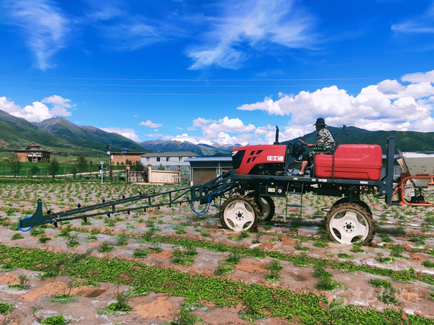 澤仁措務(wù)工之處是位于他家附近的白玉縣贈科現(xiàn)代農(nóng)業(yè)產(chǎn)業(yè)園區(qū)的萬畝核心種植基地,園區(qū)內(nèi)推廣流轉(zhuǎn)種植了藏菊花、藜麥、高原有機蔬菜、中藏藥材等共4500畝,園區(qū)主打種植藜麥、菊花等農(nóng)特產(chǎn)品,目前已實現(xiàn)規(guī)?;?、連片化、機械化種植。種植基地為11個建檔立卡戶提供了長期固定崗位,園區(qū)建設(shè)通過土地流轉(zhuǎn)、村民就近務(wù)工等渠道,促進助農(nóng)增收多樣化,已兌現(xiàn)勞務(wù)費180余萬元。同時,贈科鄉(xiāng)的依里村、上比沙村、下比沙村通過土地流轉(zhuǎn),兩年多來憑借土地流轉(zhuǎn)獲得280余萬元的收益。