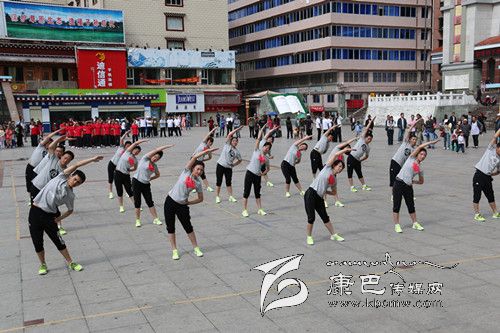 本網(wǎng)訊(記者 張濤 文/圖) 8月8日上午,以“全民健身促健康,同心共筑中國(guó)夢(mèng)”為主題的康定地區(qū)“體彩杯”全民健身日第九套廣播體操展示評(píng)比活動(dòng)在康定情歌廣場(chǎng)舉行。來(lái)自康定地區(qū)的州、縣6支代表隊(duì)100多名參賽隊(duì)員參加了評(píng)比,活動(dòng)展示了廣大干部職工積極向上、勇于進(jìn)取的精神風(fēng)貌。