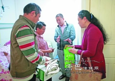 雖然大家都在獻愛心,但這點錢也顯得杯水車薪。結對認親小分隊回到報社后,立即向報社黨委作了匯報,第二天中午,報社派出人員代表黨委、編委會、結對支部和全體職工,到州人民醫(yī)院探望蘇國全,這才出現(xiàn)了本文開頭的一幕。在病房照顧蘇國全的妻子和女兒看見“親戚”單位來了人,眼里閃動著激動的淚光。“這幾天借來的錢都要用光了,如果停藥就會有危險。”蘇國全的妻子饒大姐說。報社領導安慰她說,“不要急,我們大家一起想辦法。”并將全社職工捐贈的10000元現(xiàn)金交到她的手中。當她從報社領導手中接過愛心款時,母女倆的淚水奪眶而出,連聲感謝。
